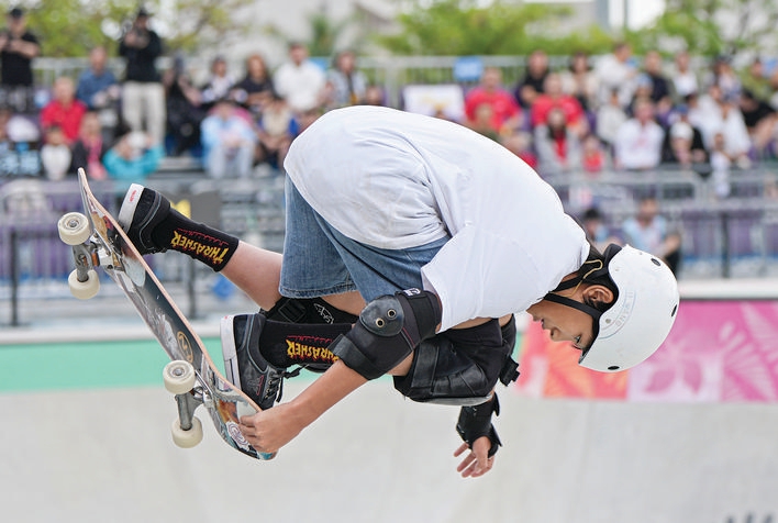 “覺得對手們都太厲害了,我還是有點緊張。”賽后,10歲的楊凱淇表達了本次大賽面對的壓力。雖在比賽中出現多次摔倒,但她始終沒有退縮,堅持完成全部賽程。對她而言,滑板最吸引人的地方正是“摔倒了就再爬起來”。