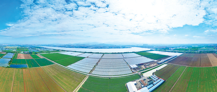 在惠州仲愷高新區(qū)潼湖鎮(zhèn),合利菜場的連片溫室大棚在藍(lán)天白云下熠熠生輝。時(shí)下正值冬種繁忙時(shí)節(jié),這里的農(nóng)田里滿是勞作的身影,各類蔬菜在標(biāo)準(zhǔn)化的種植模式下蓬勃生長。作為粵港澳大灣區(qū)重要的“菜籃子”供應(yīng)基地之一,合利菜場的蔬菜不僅供應(yīng)廣州、深圳等城市,還源源不斷地輸往香港、澳門。從空中俯瞰,規(guī)整的農(nóng)田、現(xiàn)代化的溫室大棚與周邊的水系、遠(yuǎn)山相映成趣,勾勒出一幅現(xiàn)代農(nóng)業(yè)與自然景觀交融的美麗畫卷。惠州日報(bào)記者鐘暢新 攝