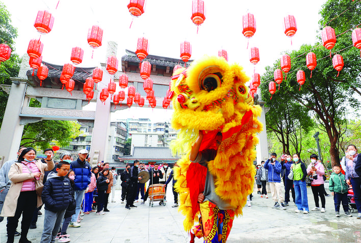 春節系列文化活動醒獅表演吸引眾多市民圍觀。惠州日報記者鐘暢新 攝