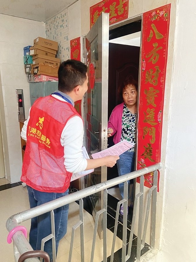 文昌社區黨員志愿者上門宣傳。
