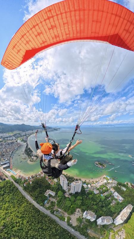 游客在巽寮灣體驗滑翔傘,感受“空中漫步”的樂趣。惠州市長弘戶外運動有限公司供圖