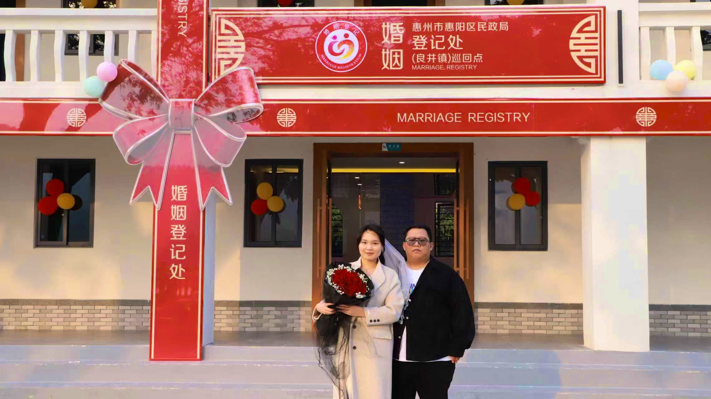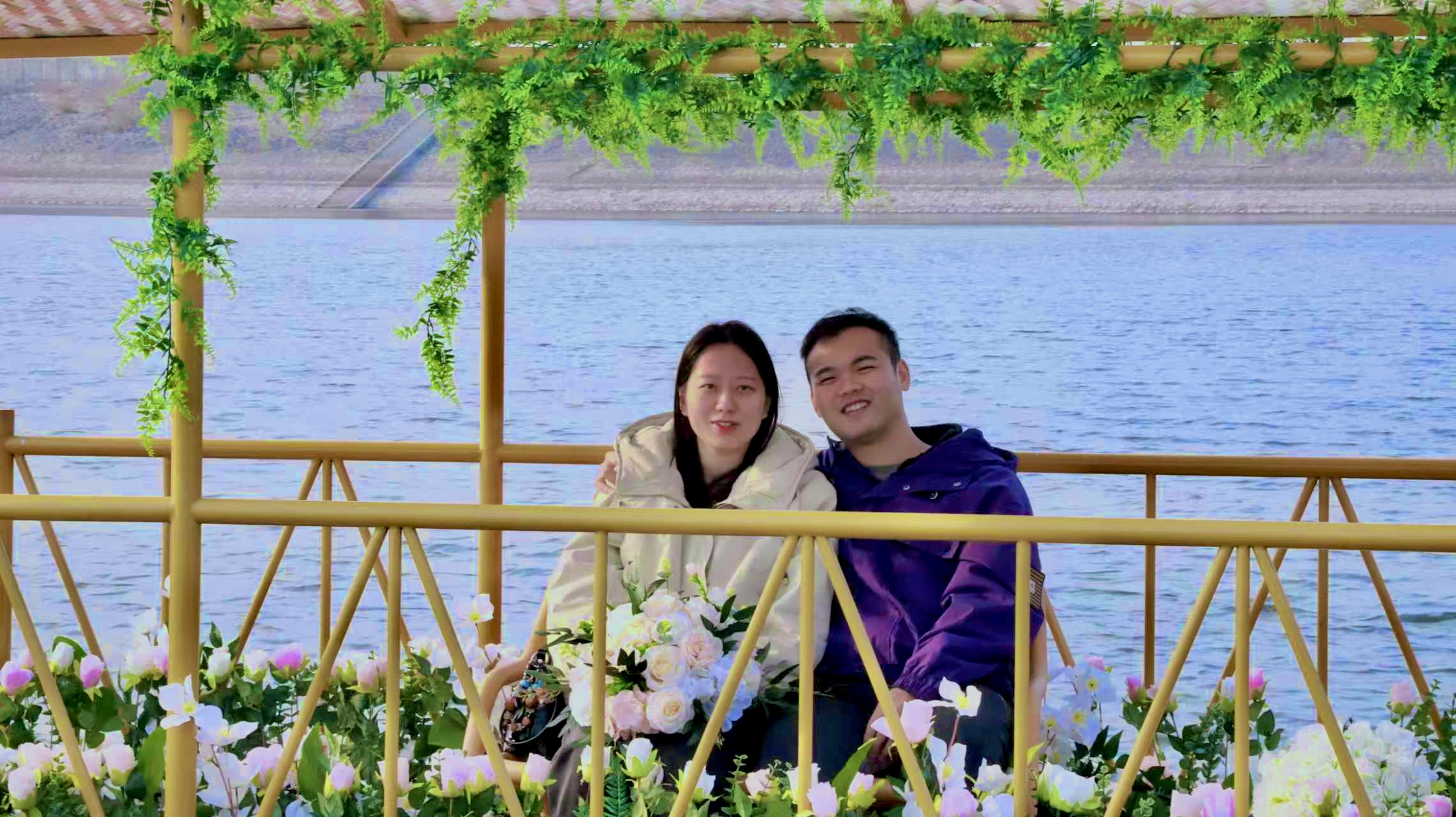 第二對良井本地小夫妻,原計(jì)劃前往惠城區(qū)拍攝婚紗照,聽聞這里有個(gè)浪漫打卡點(diǎn),便特意前來體驗(yàn)。坐花車、游花船,工作人員精心準(zhǔn)備的一系列浪漫環(huán)節(jié),讓小兩口驚喜不已。