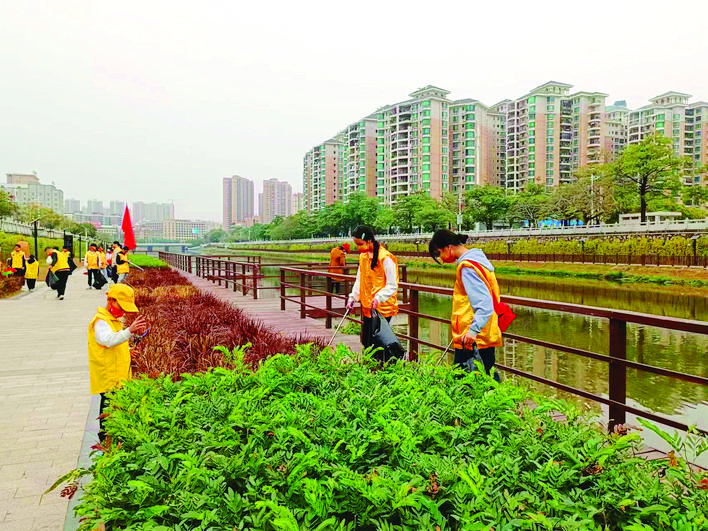 志愿者撿跑帶動身邊人愛護環境。 惠州日報記者洪鵲兒 通訊員葉衍達 劉曉玲 攝